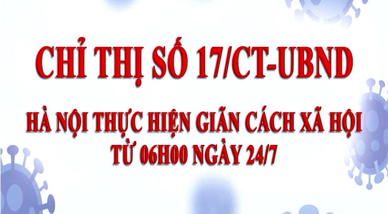 Ngày 23/7/2021, Chủ tịch UBND thành phố Hà Nội Chu Ngọc Anh đã ký ban hành Chỉ thị số 17/CT-UBND thực hiện giãn cách xã hội trên địa bàn Thành phố để phòng, chống dịch Covid-19.